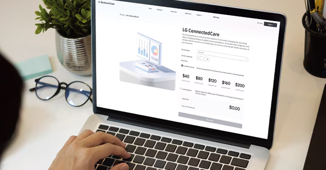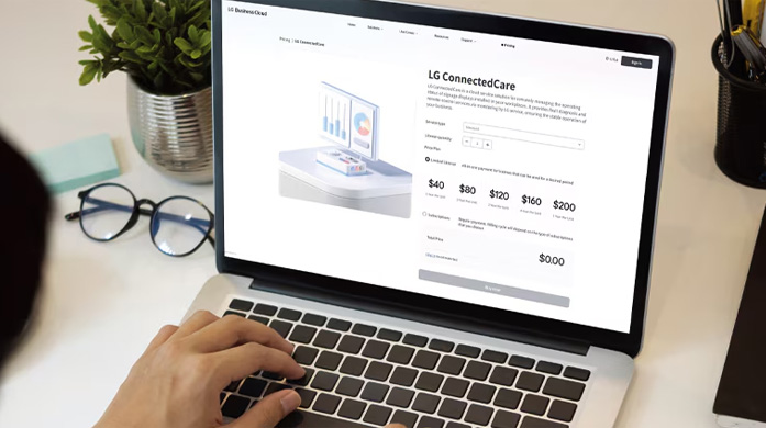 Select and purchase or subscribe to the necessary solutions based on quantity, type, grade, and duration of licenses according to the usage environment, similar to buying products online. Solutions purchased or subscribed to can be easily integrated with LG devices* on the same website.