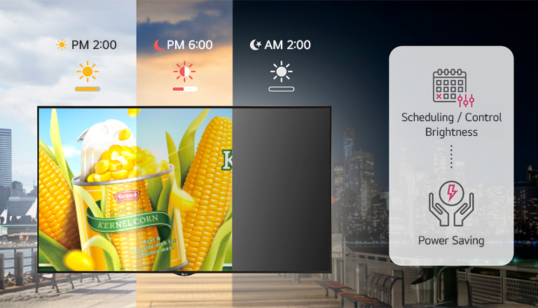 The brightness level of digital signage displays is a major factor in determining their power consumption. LG SuperSign CMS provides convenient multi-device control, including brightness scheduling, which helps optimize power consumption.
